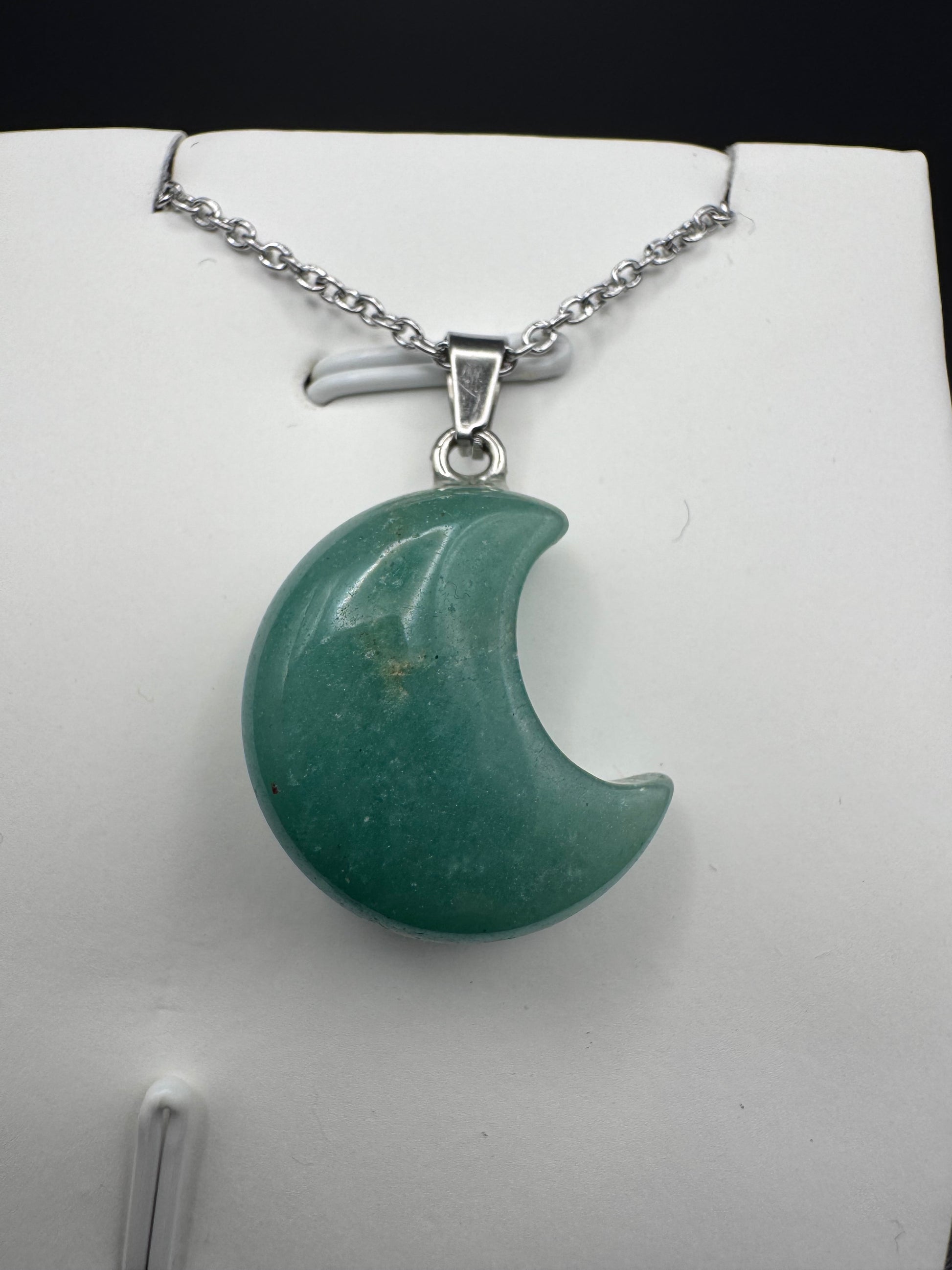 Mondanhänger aus grünem Aventurin – Halskette aus Edelstahl mit natürlichem grünem Stein | JD Minerals