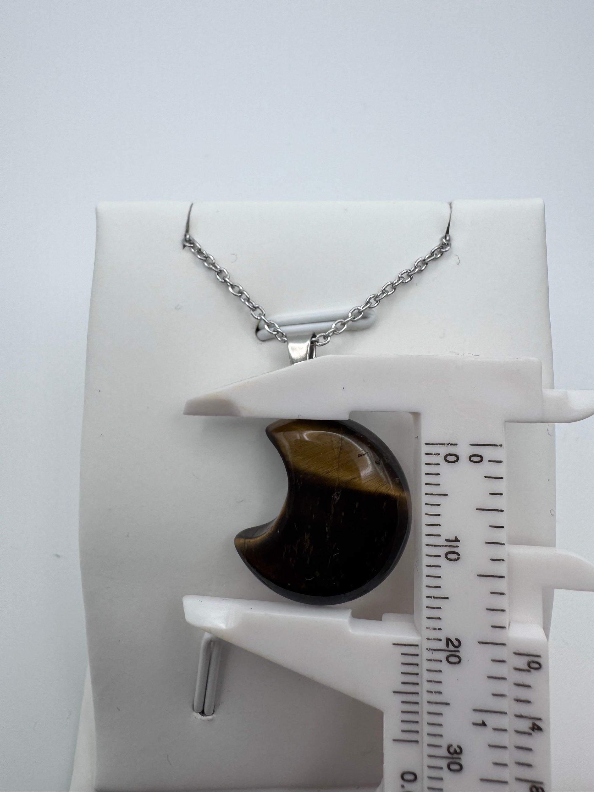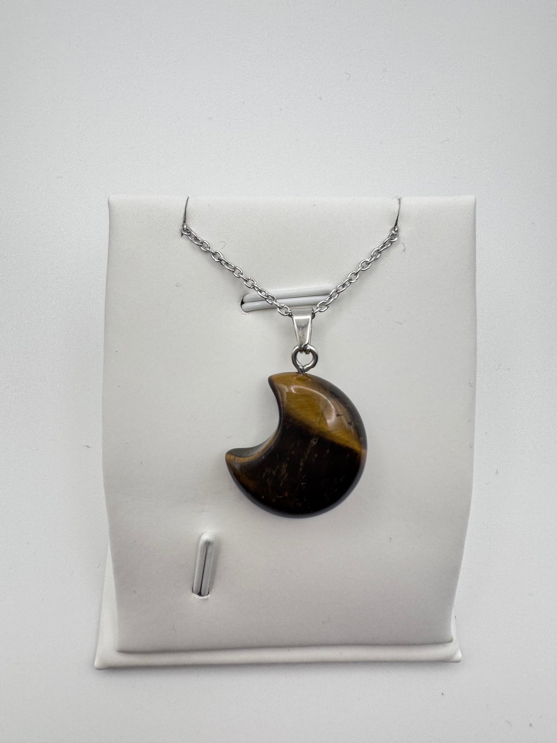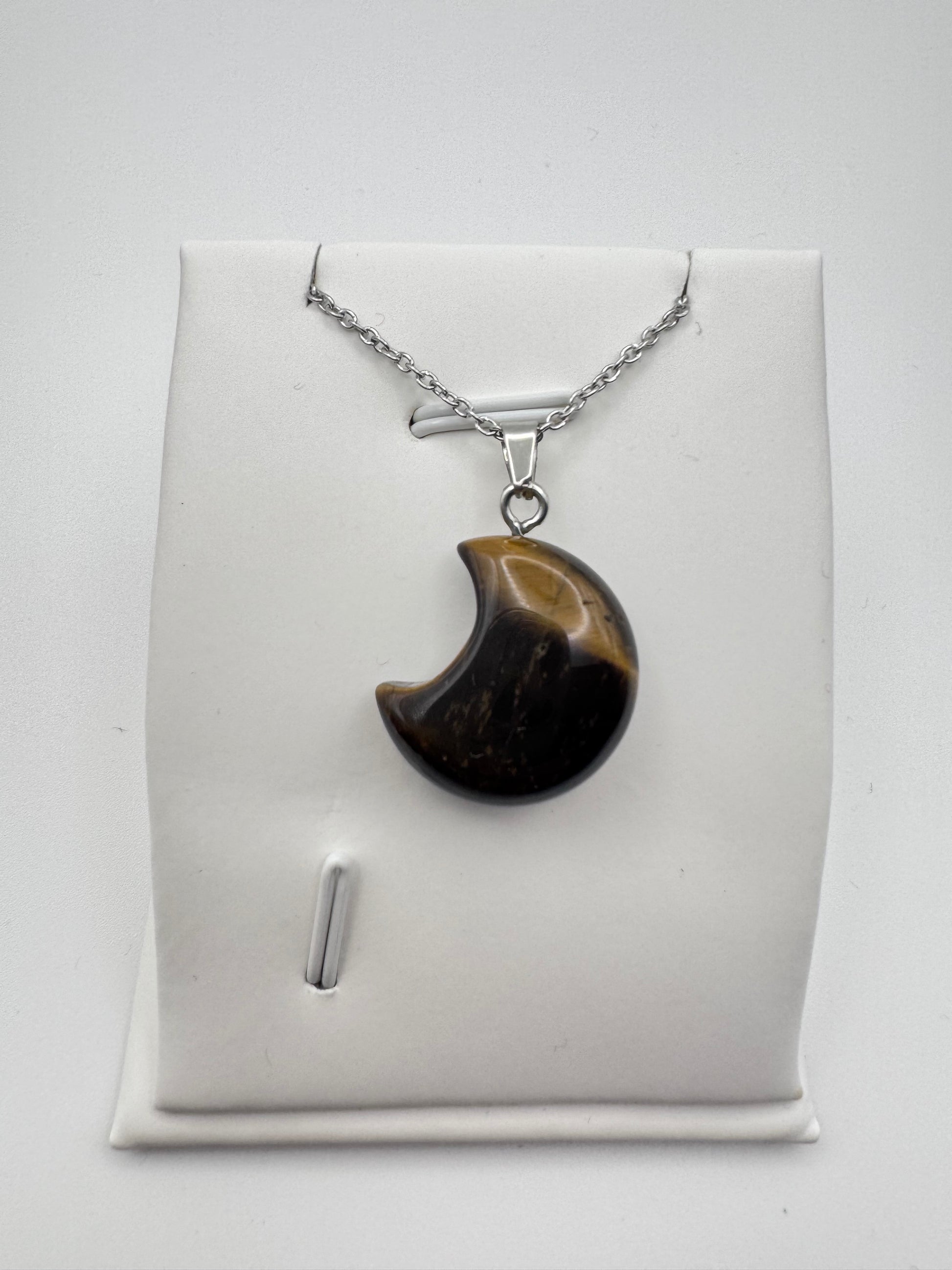 Tigeraugen-Mondanhänger – Halskette aus natürlichem braun-goldenem Stein in Edelstahl | JD Minerals