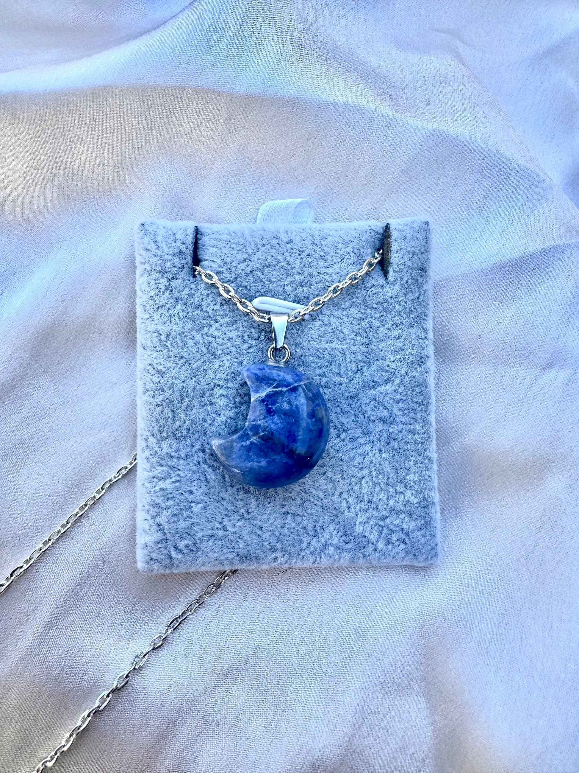 Lapis Lazuli Moon Pendant – Natural Blue Stone Necklace in Stainless Steel | JD Minerals