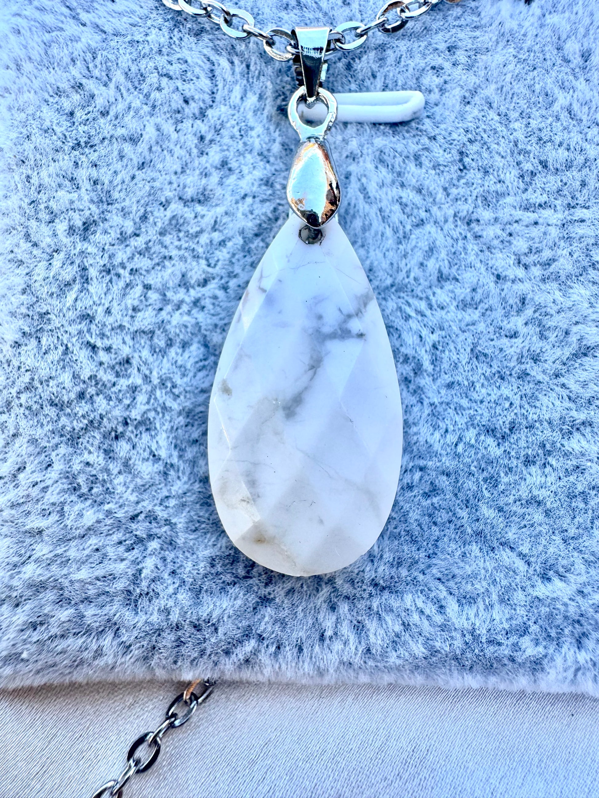Pendente a goccia in howlite sfaccettata – Collana in pietra bianca naturale in acciaio inossidabile | JD Minerals