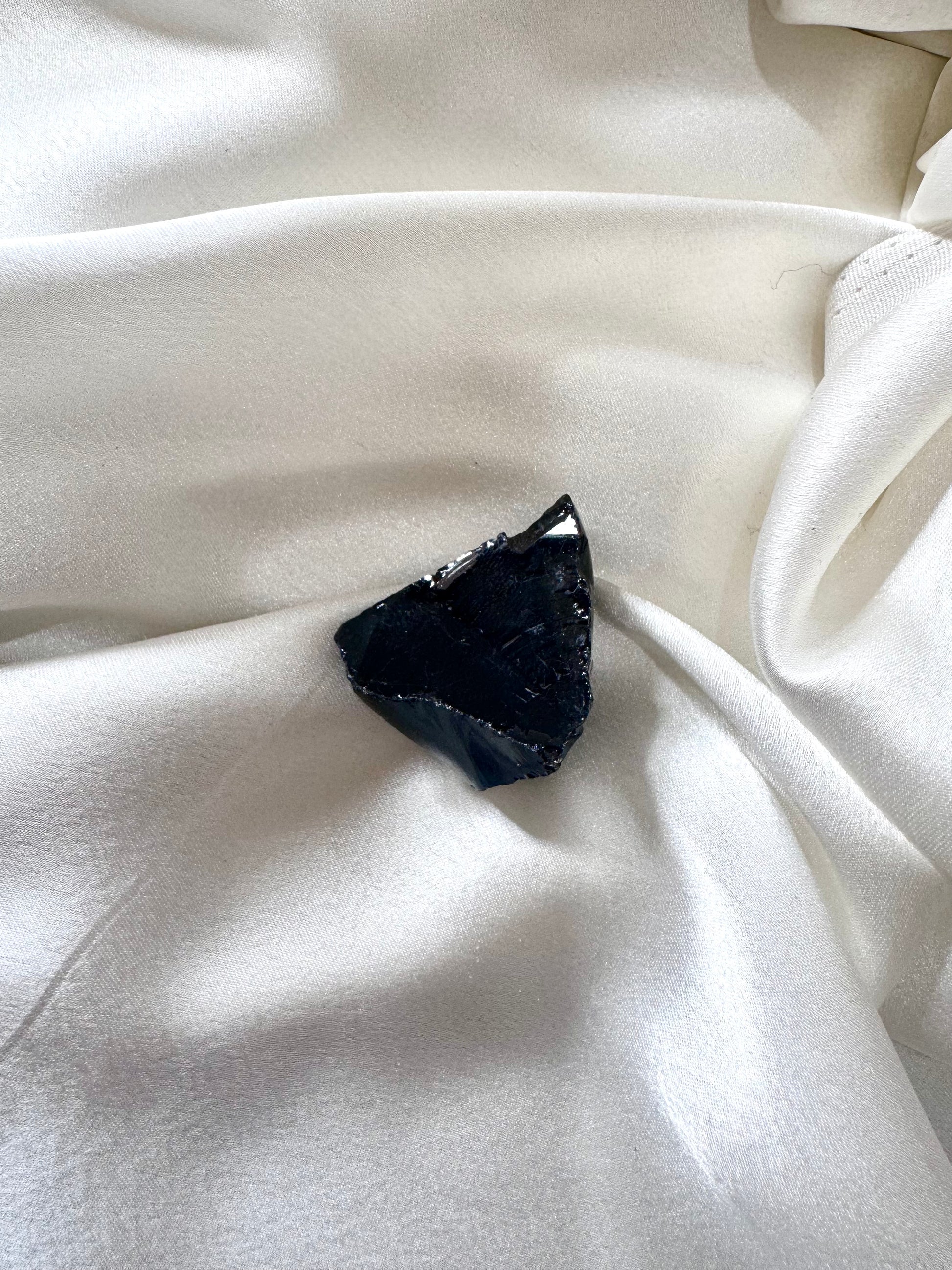 Potente e radicante, questo pezzo di ossidiana nera grezza presenta una superficie liscia e vitrea con tonalità di nero intenso. Nota per le sue qualità protettive, l'ossidiana aiuta ad assorbire l'energia negativa, a radicarsi e a favorire la guarigione emotiva.
