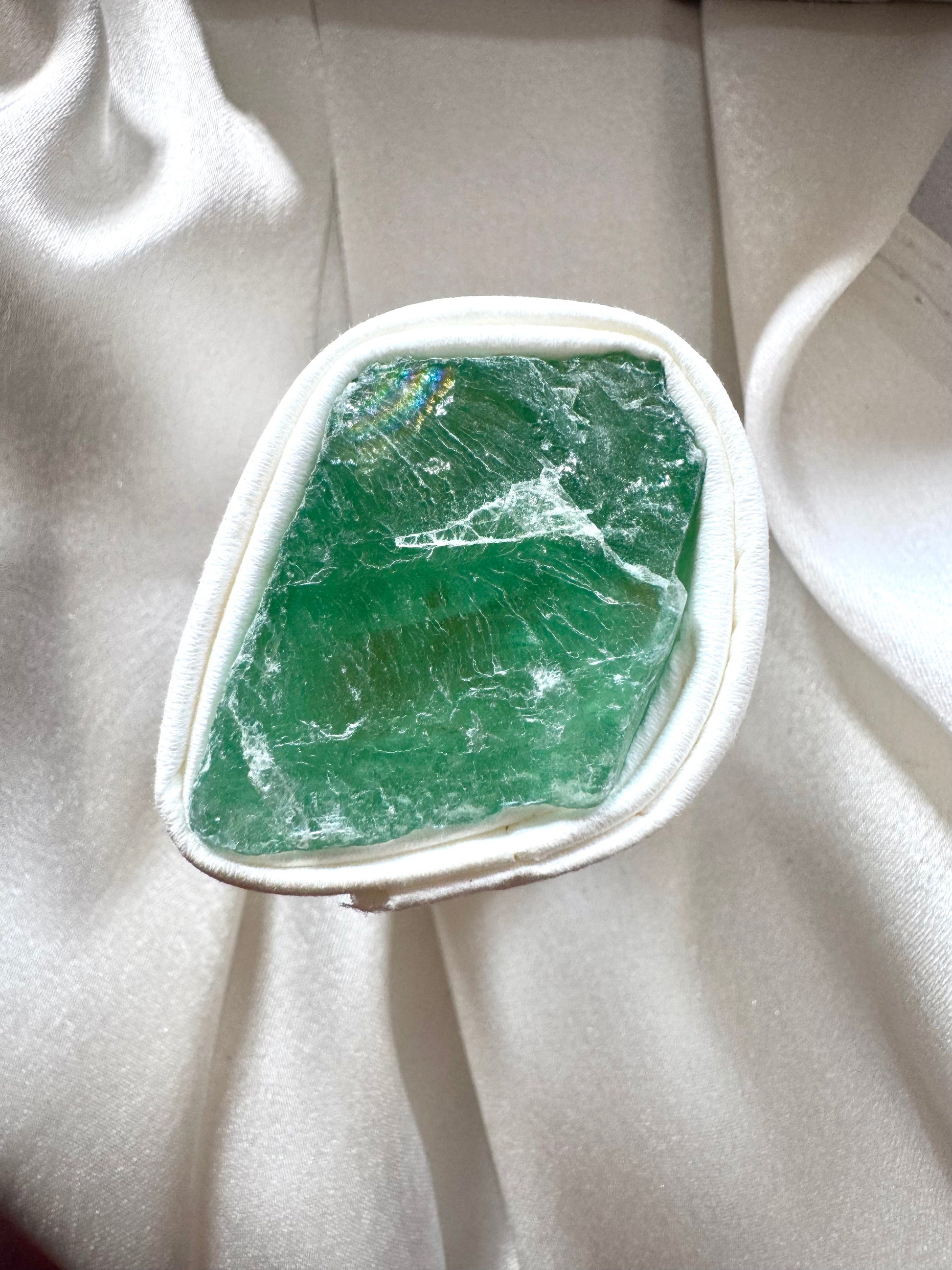 Esplora la bellezza naturale della fluorite verde grezza, una gemma nota per la sua vibrante tonalità verde e le potenti proprietà curative. Questo pezzo grezzo, incastonato nella sua matrice originale, simboleggia crescita e rinnovamento. È venerata per la sua capacità di eliminare l'energia negativa, migliorare la chiarezza mentale e supportare il risveglio spirituale.